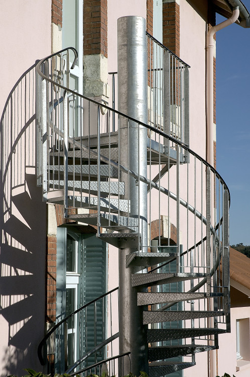 ESCALIER MÉTALLIQUE HÉLICOÏDAL SANS LIMON.