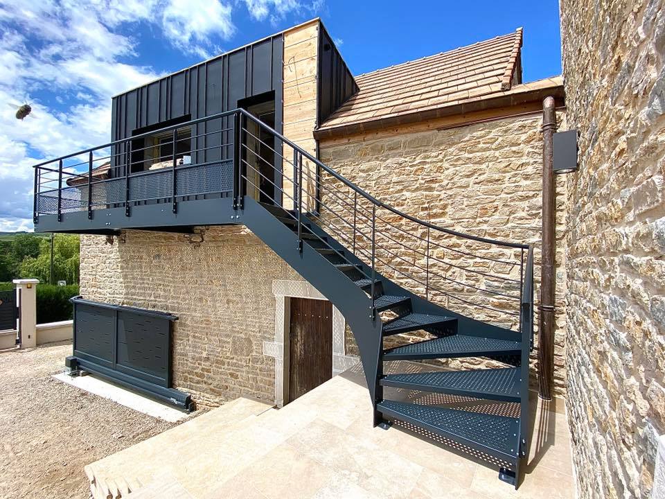ESCALIER MÉTALLIQUE A UN OU DEUX QUARTIER TOURNANTS
