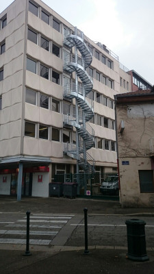 ESCALIER MÉTALLIQUE HÉLICOÏDAL ET DROIT AVEC LIMONS.